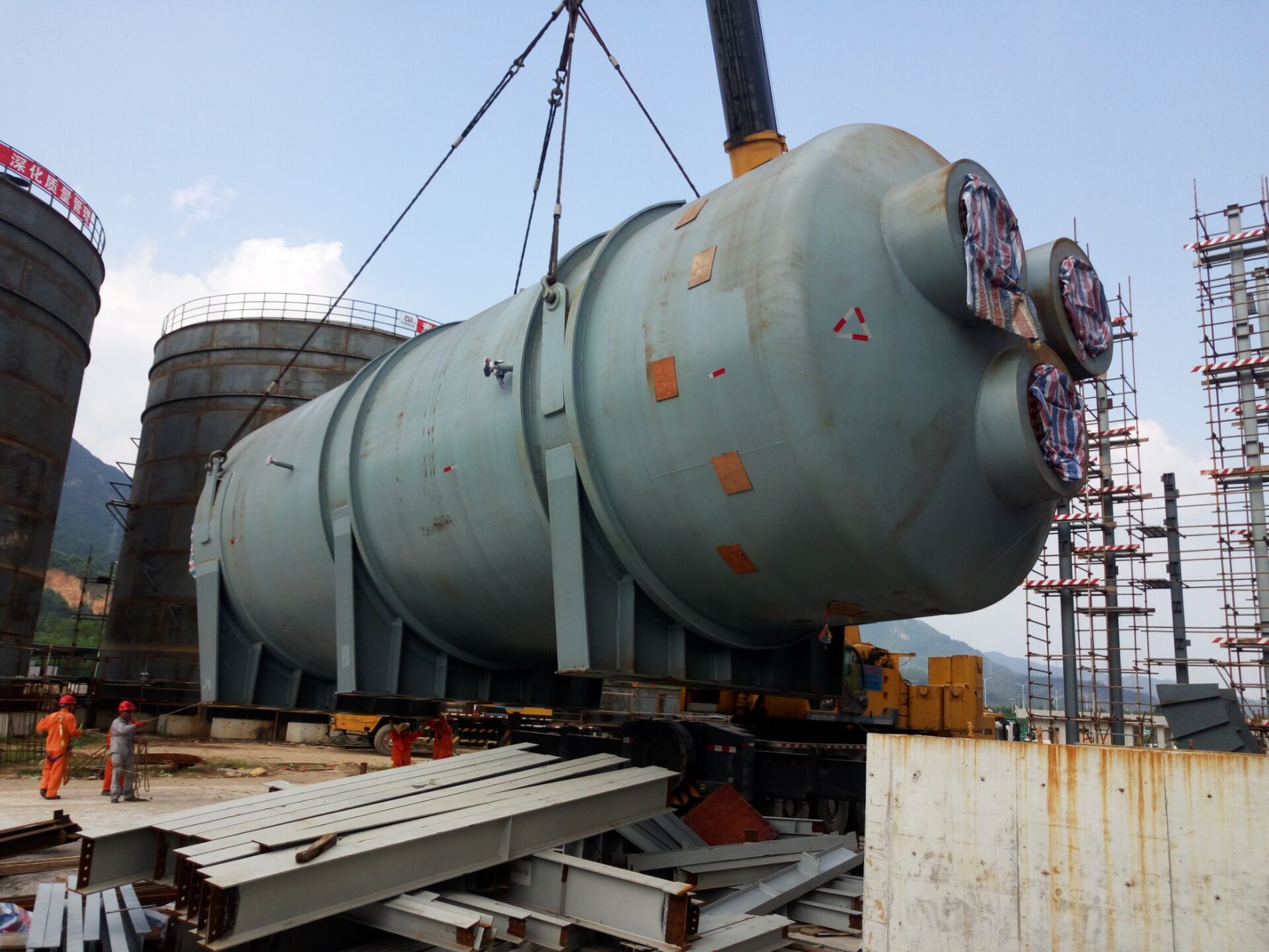 今天,由博納科技設(shè)計(jì)的WSA工藝H2S尾氣制酸焚燒爐——百利宏化工集團(tuán)惠州市宏瑞環(huán)保能源有限公司10萬噸/年煉油廢氣綜合利用項(xiàng)目焚硫爐,在歷時(shí)半月的江運(yùn)、海運(yùn)之后順利到達(dá)大亞灣石化區(qū)項(xiàng)目現(xiàn)場(chǎng),并在下午15時(shí)順利吊裝完成。
